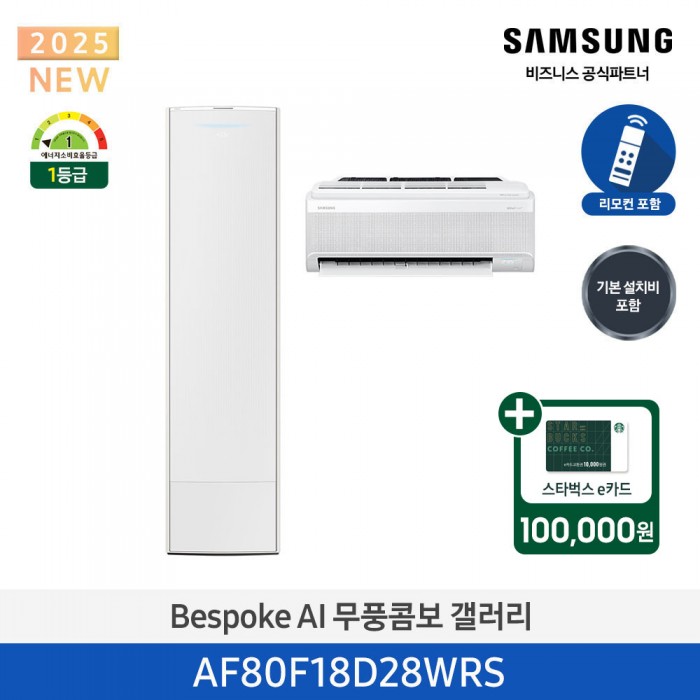 [삼성][18평형+6평형] 삼성 BESPOKE 25년형 AI 무풍콤보 갤러리 홈멀티 에어컨 에센셜 화이트[AF80F18D28WRS] 4월 > ★2026 NEW★에어컨(홈멀티)
