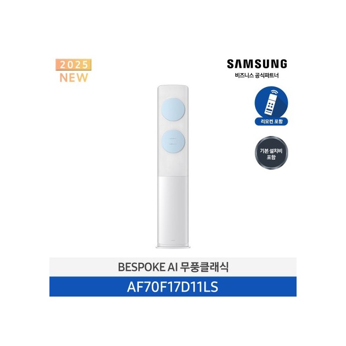 [삼성][17평형] 삼성 BESPOKE 25년형 AI 무풍클래식 스탠드 에어컨 메탈 화이트 블루 [AF70F17D11LS] 4월 > ★2026 NEW★에어컨(단품)