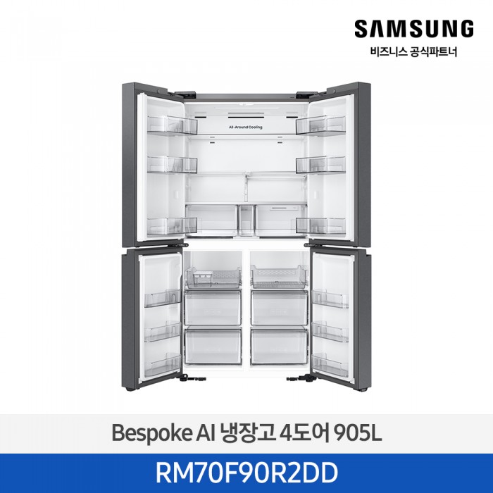 [삼성][25년NEW] 삼성 Bespoke AI 냉장고 4도어 905L 에센셜다크메탈 [RM70F90R2DD] 4월 > 냉장고