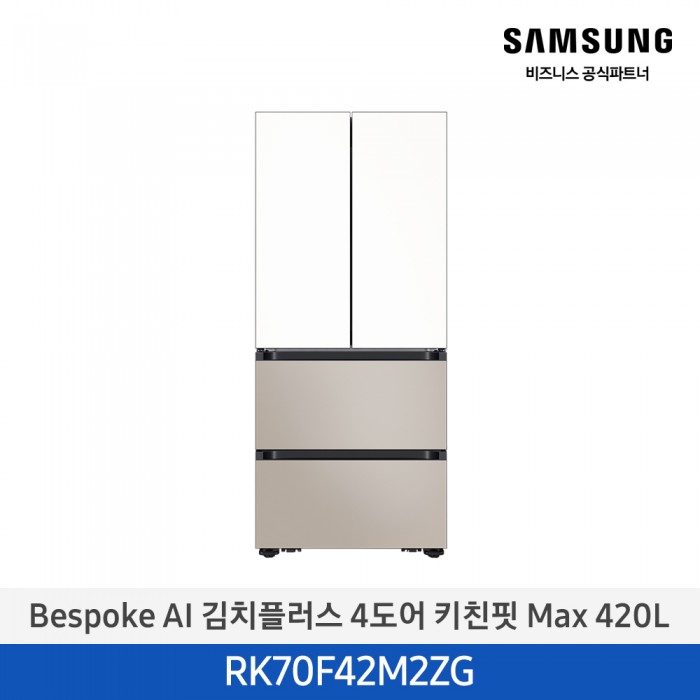 [삼성][420리터][25년 NEW] BESPOKE AI 김치플러스 4도어 키친핏 Max 420L [RK70F42M2ZG] 4월 요약정보 및 구매
