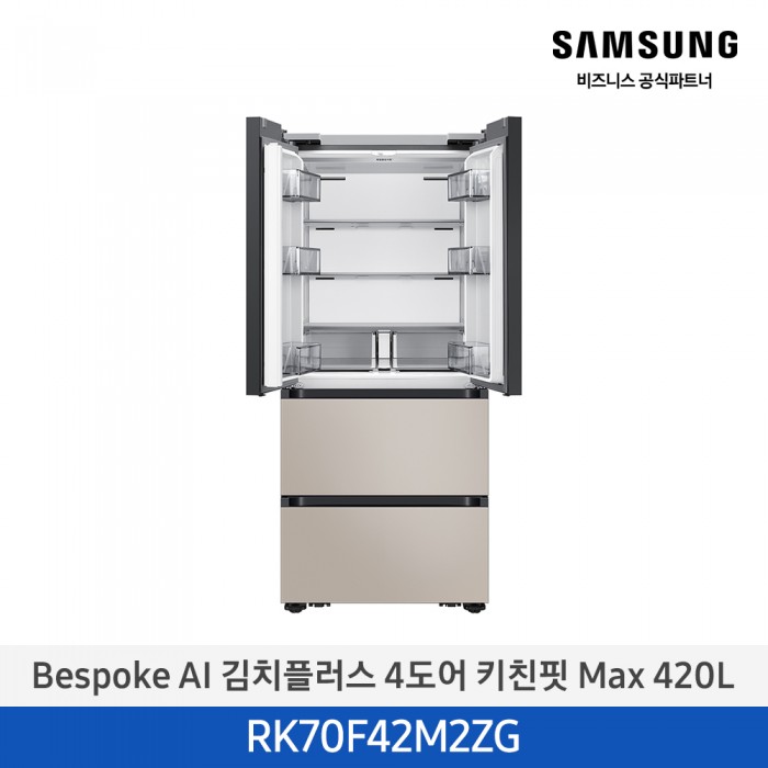 [삼성][420리터][25년 NEW] BESPOKE AI 김치플러스 4도어 키친핏 Max 420L [RK70F42M2ZG] 4월 > 김치냉장고
