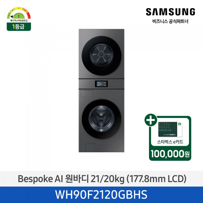 2025 NEW [삼성] Bespoke AI 원바디 21/20kg 7인치 LCD / 다크스틸 [WH90F2120GBHS] 4월 요약정보 및 구매