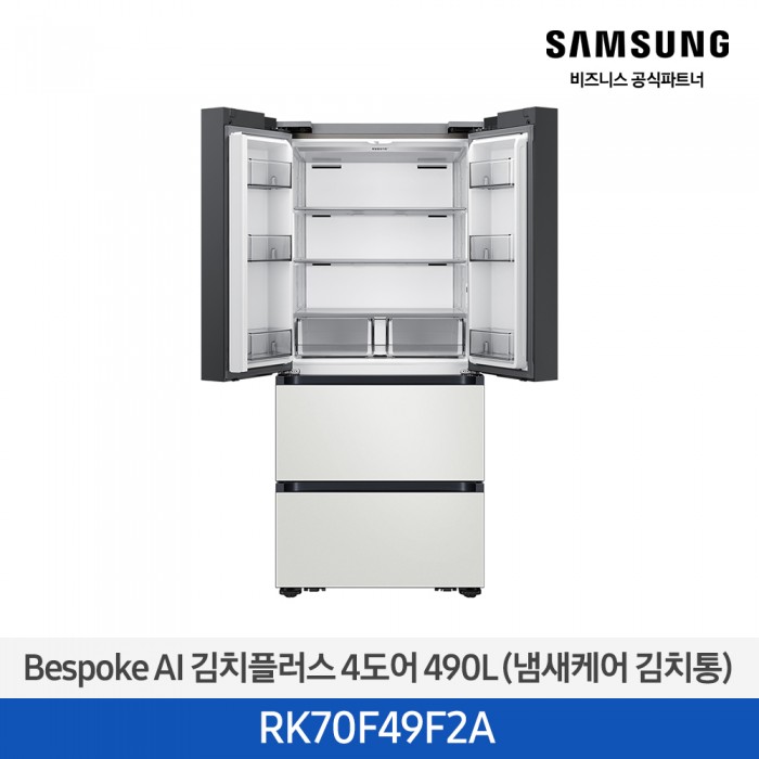 [삼성][490리터][25년 NEW] BESPOKE AI 김치플러스 4도어 490L (냄새케어 김치통) [RK70F49F2A] 4월 > 김치냉장고