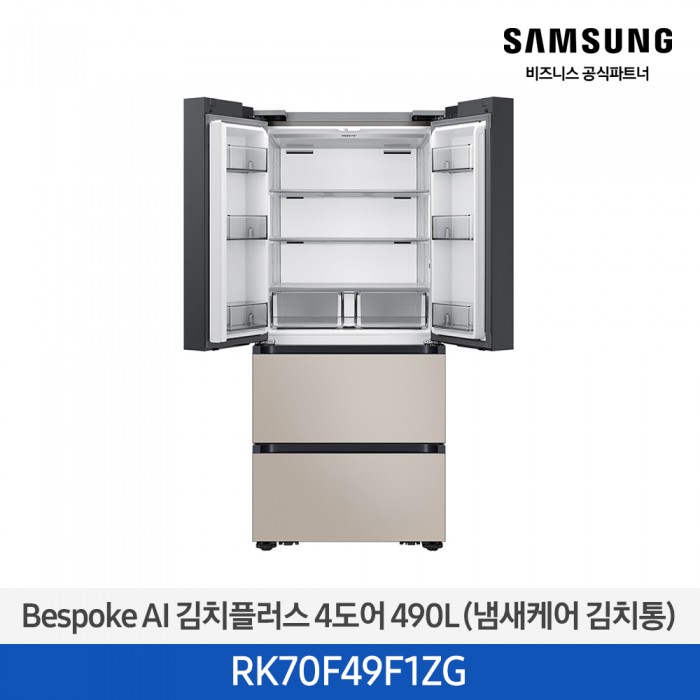 [삼성][490리터][25년 NEW] BESPOKE AI 김치플러스 4도어 490L (냄새케어 김치통) 에센셜 화이트+베이지 [RK70F49F1ZG] 4월 > 김치냉장고